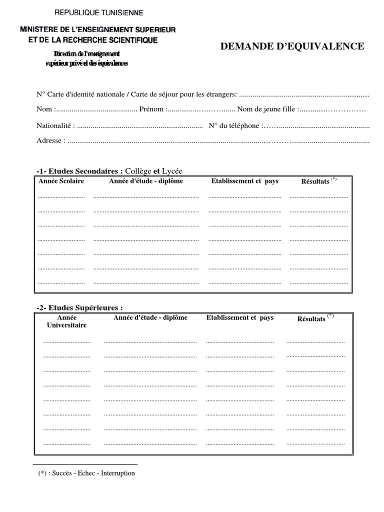Pour l’équivalence du baccalauréat l’intéressé doit présenter en plus :