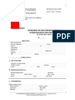 Diplôme présenté à l'équivalence : ................................................Date d'obtention :........................