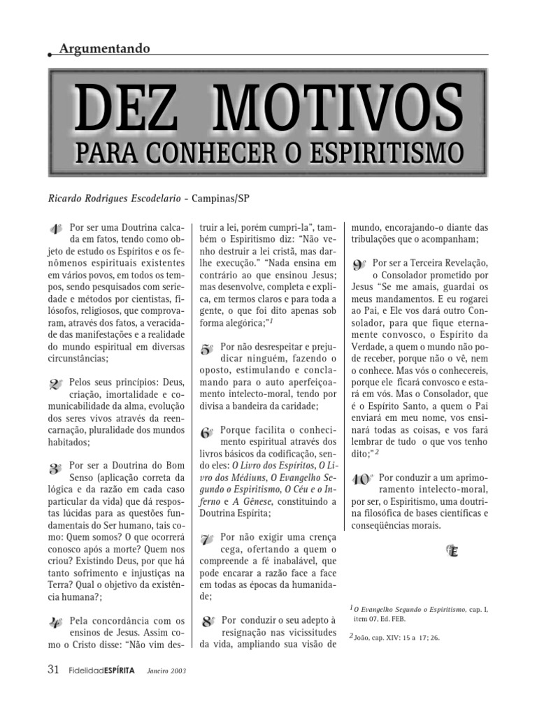 1 O Evangelho Segundo o Espiritismo, cap. I, item 07, Ed. FEB.
