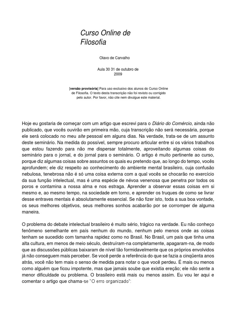 Olavo: Isto é exatamente como tal. O começo do livro, o começo da compreensão deste livro,