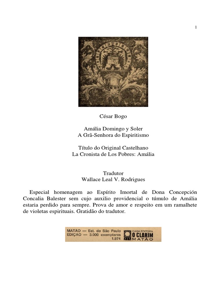 (1970); Doutrina Espiritista (1955) e a biografia da imensurável Amália