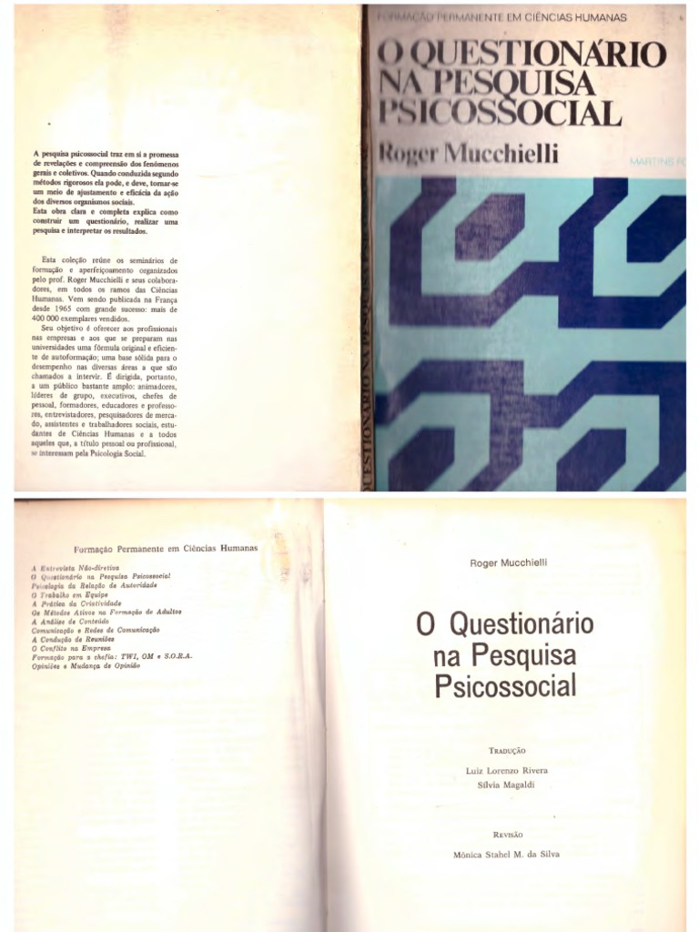 M914q 0 questionário na pesquisa psicossocial / Roger Mucchielli ; Cap. 3 As etapas de uma enquête psicossocial através de questio-