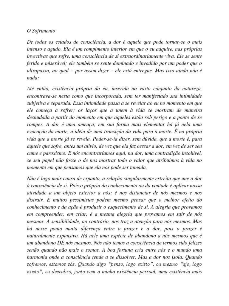 tal como ela se mostra a mim na dor, é a do eu individual naquilo que ele tem de
