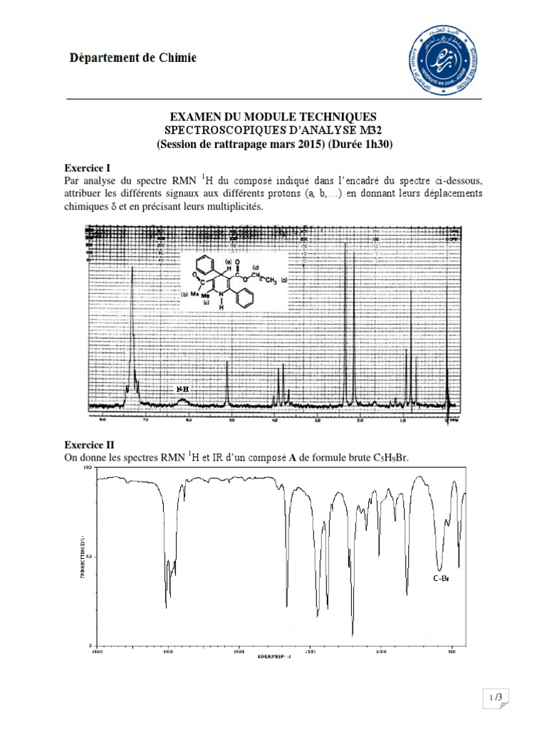 On donne les spectres RMN 1H et IR d’un composé A de formule brute C5H9Br.