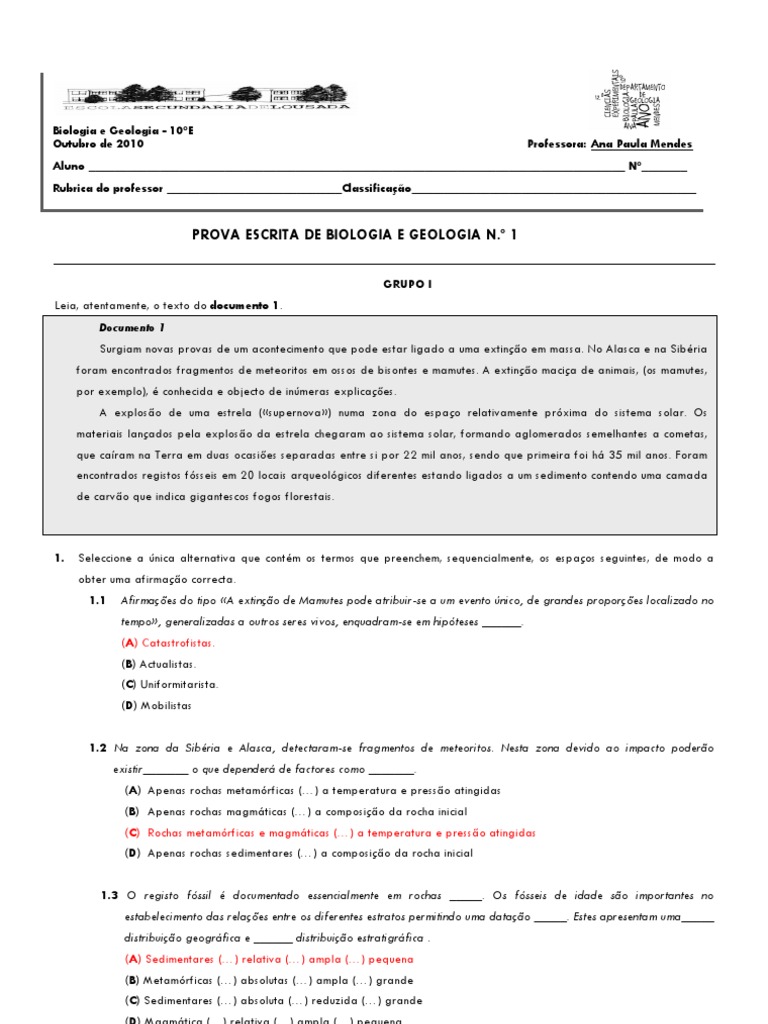 1.3 O registo fóssil é documentado essencialmente em rochas _____. Os fósseis de idade são importantes no