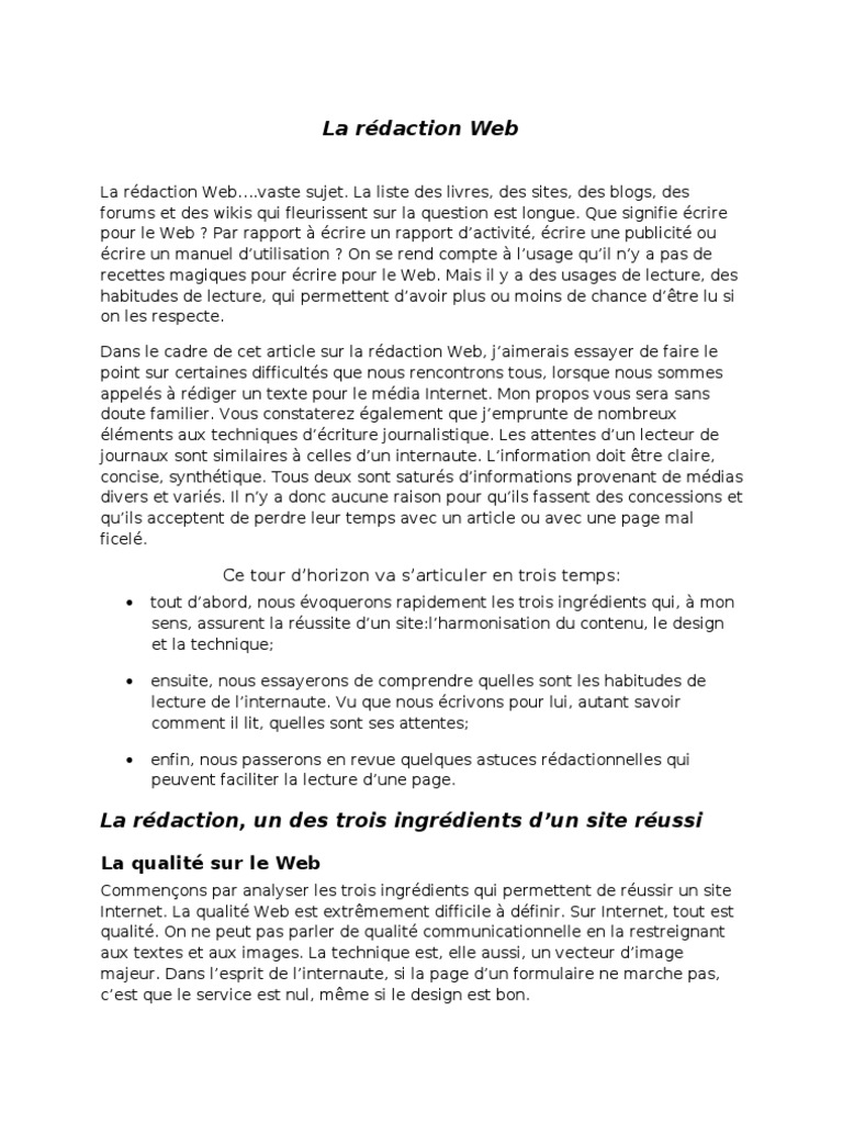 appelés à rédiger un texte pour le média Internet. Mon propos vous sera sans