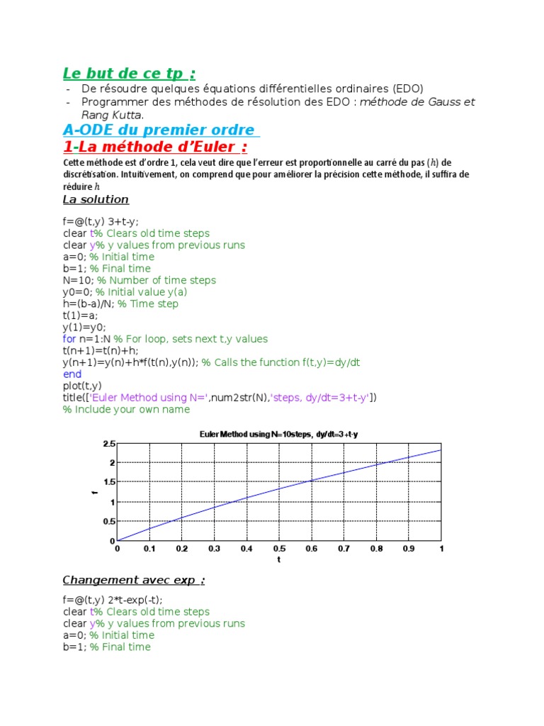 Méthode de d’euler La Méthode de Runge-Kutta