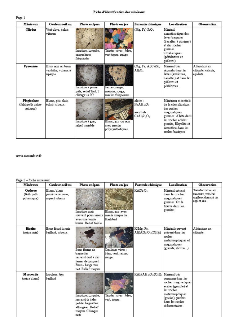 Page 2 – Fiche minéraux