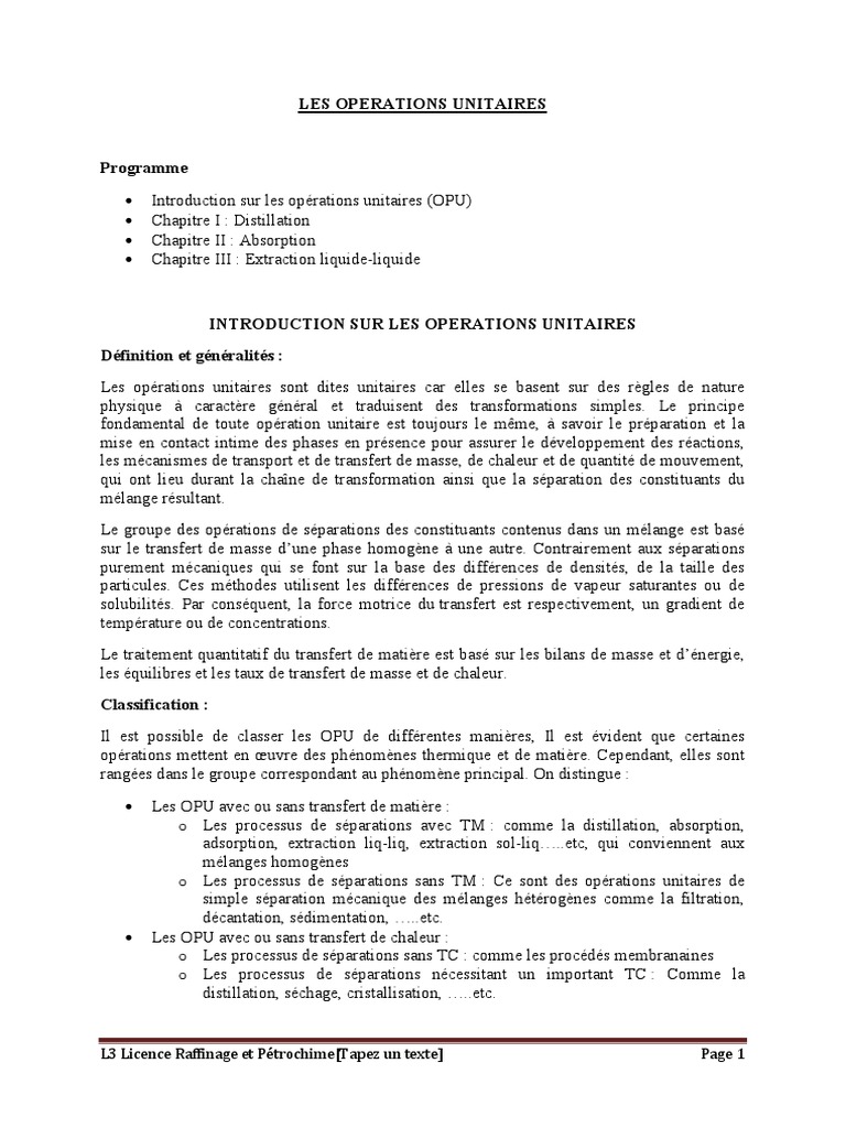 L3 Licence Raffinage et Pétrochime[Tapez un texte] Page 1