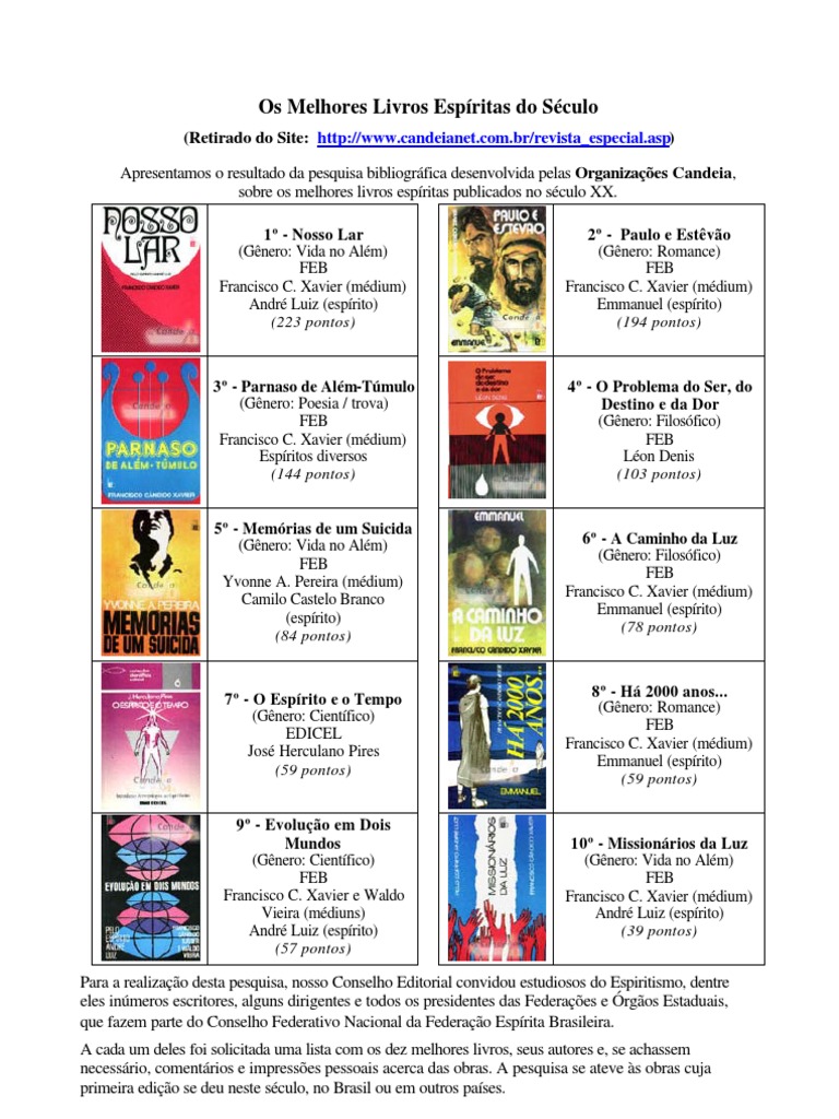 denominamos os melhores livros espíritas do Século. Se esperássemos mais um pouco, perderíamos o