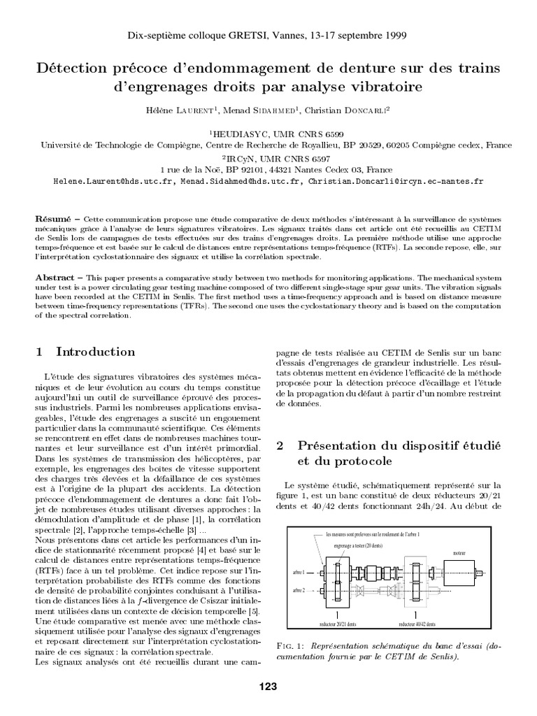 mécaniques grâce à l'analyse de leurs signatures vibratoires. Les signaux traités dans cet article ont été recueillis au CETIM