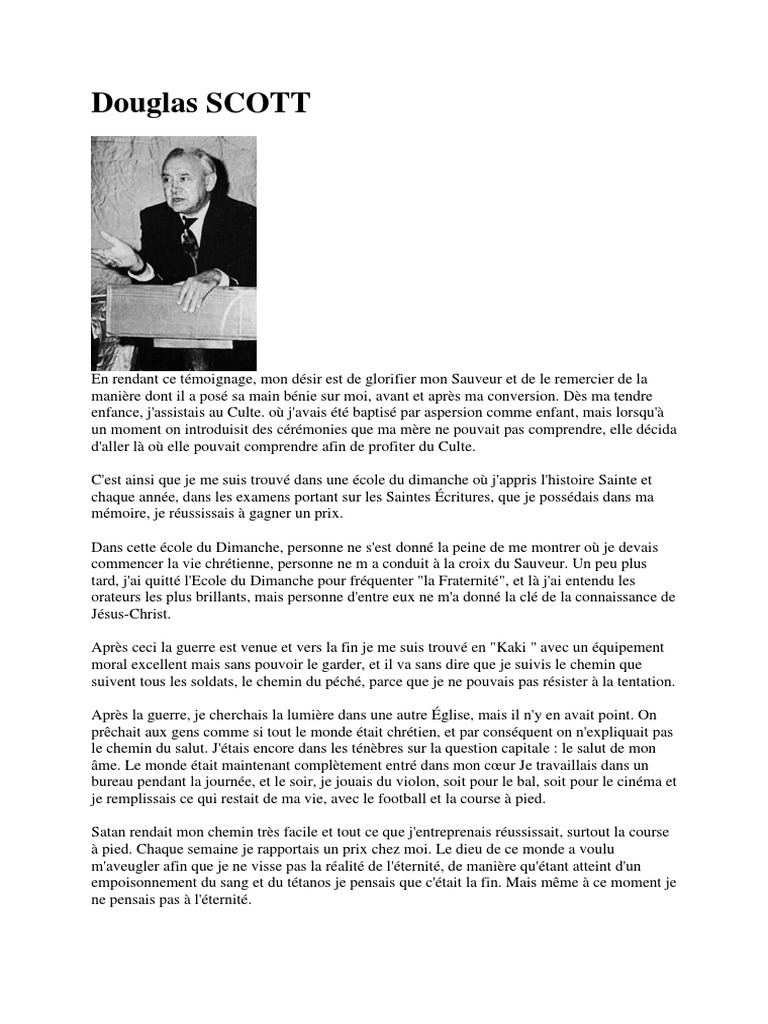 me fit cette question : " Êtes-vous sauvé "? Je lui expliquais toutes les choses que je faisais