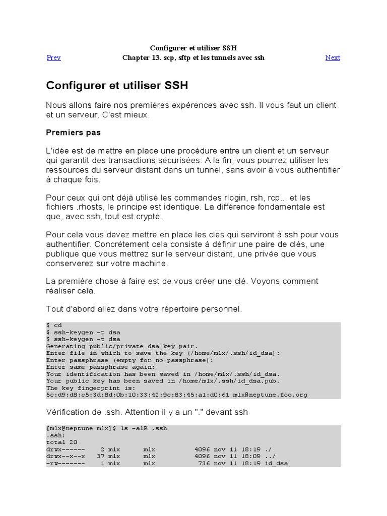 Prev Chapter 13. scp, sftp et les tunnels avec ssh Next