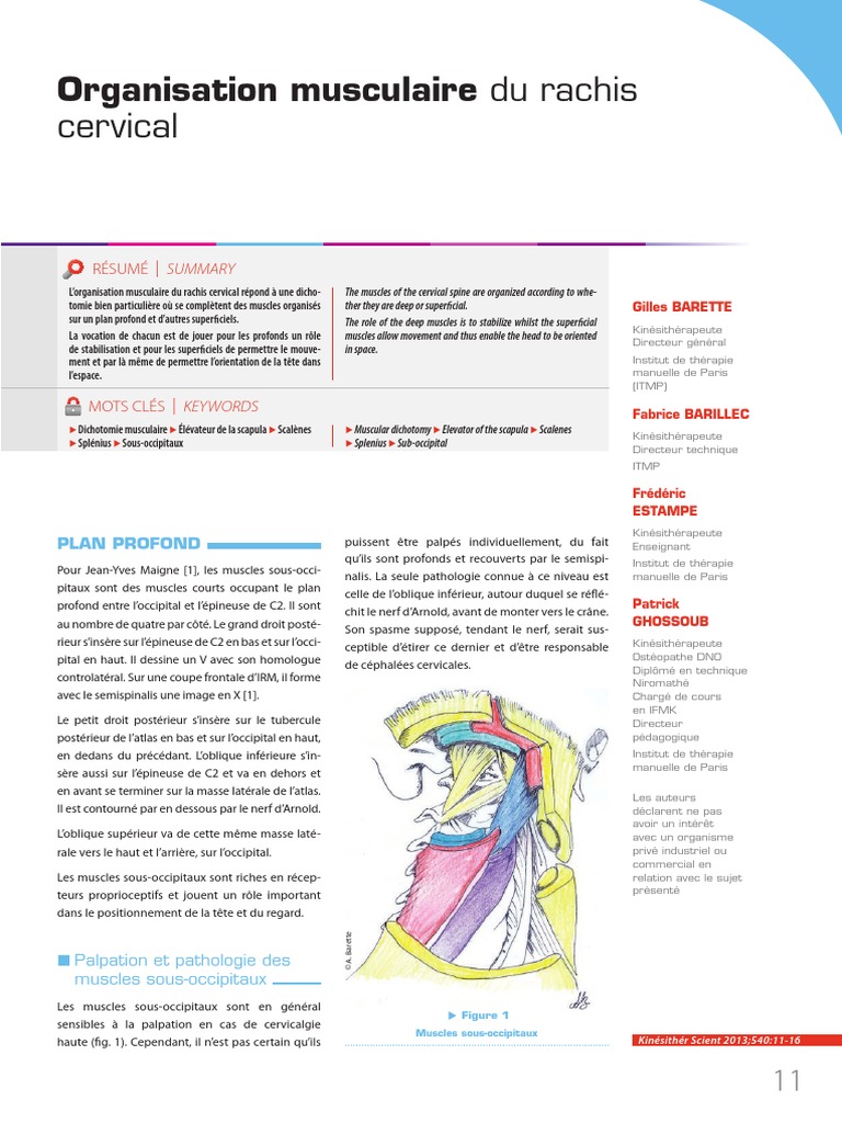 rieur s’insère sur l’épineuse de C2 en bas et sur l’occi- ceptible d’étirer ce dernier et d’être responsable Kinésithérapeute