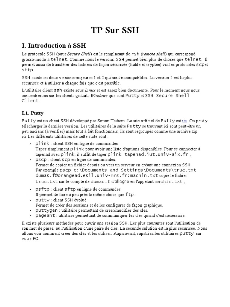 télécharger la dernière version. Les utilitaires de la suite Putty se trouvant ici sont peut-être un