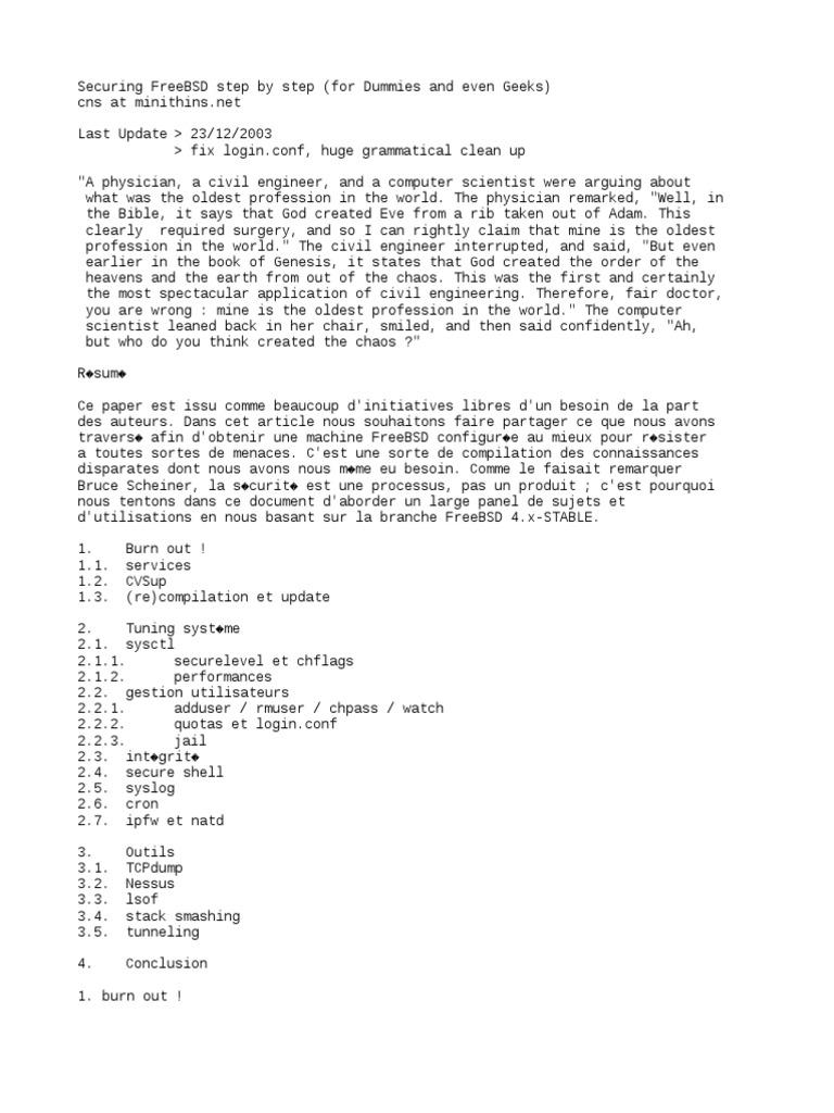 travers� afin d'obtenir une machine FreeBSD configur�e au mieux pour r�sister