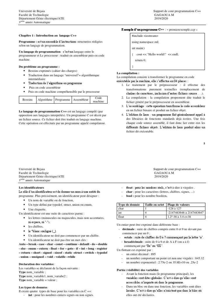 Université de Bejaia Support de cour programmation C++