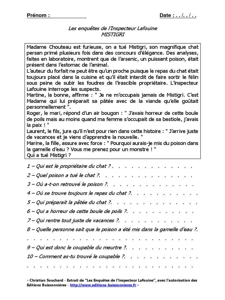 10 – Comment as-tu trouvé le coupable ?. . . . . . . . . . . .