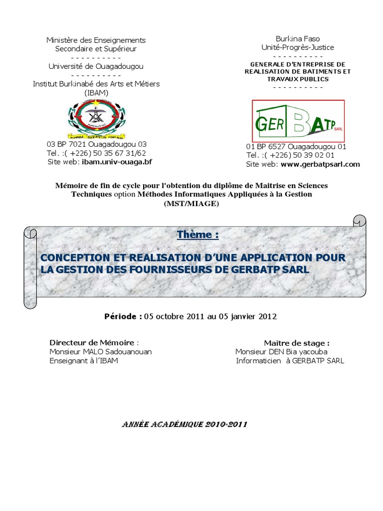 Conception et réalisation d’une application de gestion pour la GERBATP sarl ».