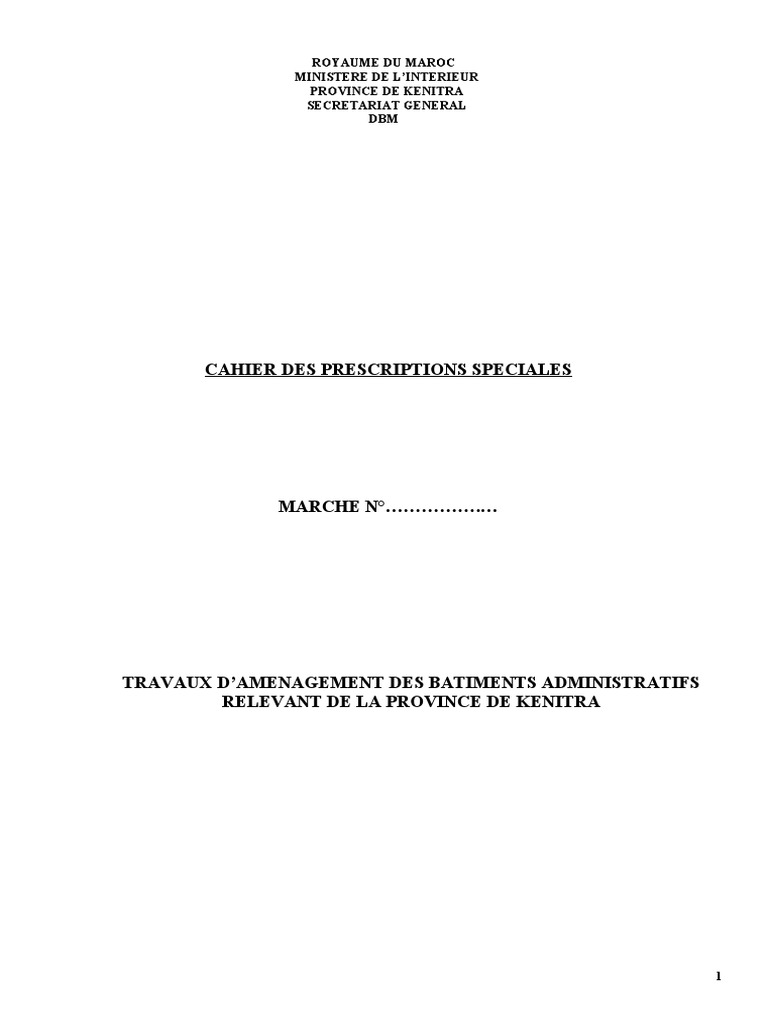 OBJET DU MARCHE : Travaux d’aménagement des bâtiments administratifs relevant de la province de kenitra