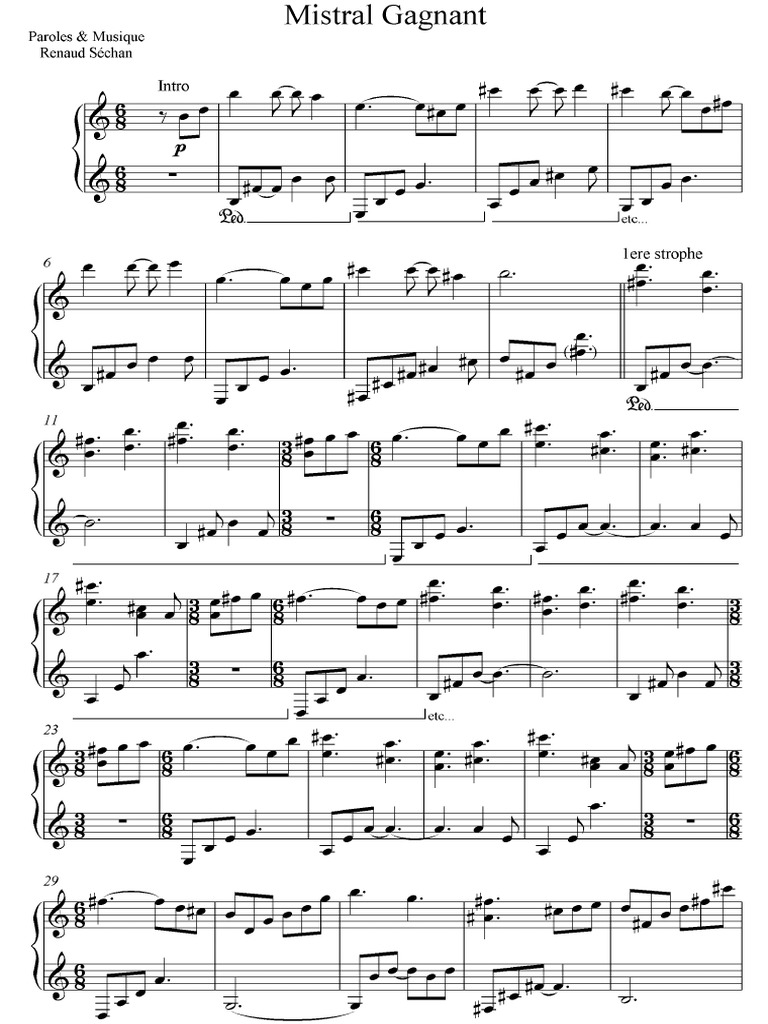 Mistral Gagnant Renaud Partitions Piano Solo Niveau Expert La Partition