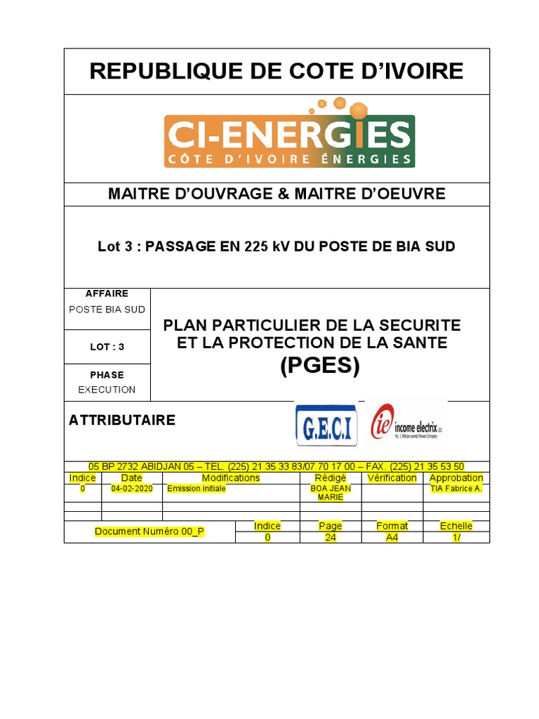 PGES Plan de Gestion Environnementale et Sociale