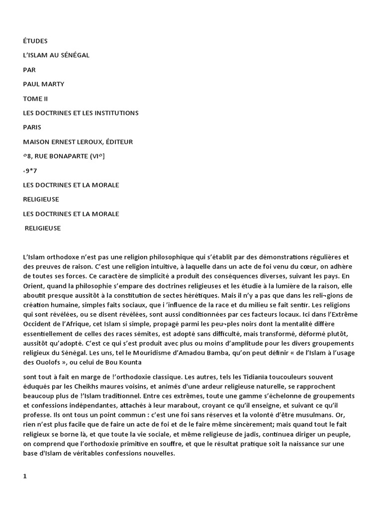 Pour se rendre compte exactement de ce que les islamisés noirs du Sénégal croient et professent, il faut