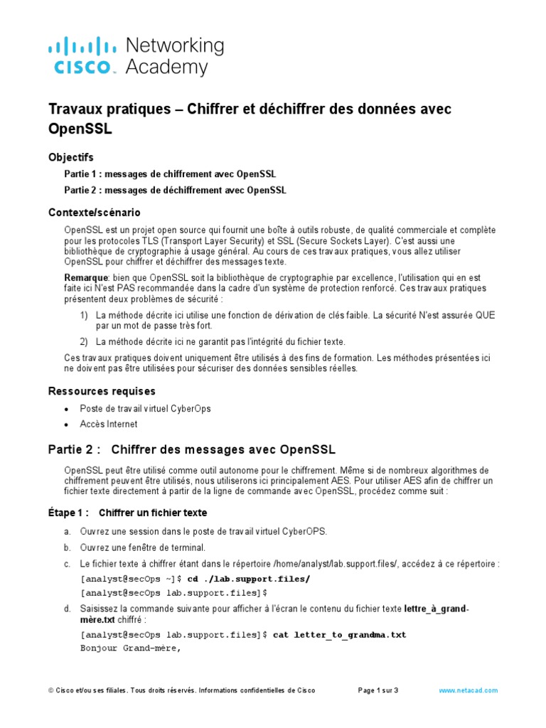 Cisco et/ou ses filiales. Tous droits réservés. Informations confidentielles de Cisco Page 1 sur 3 www.netacad.com