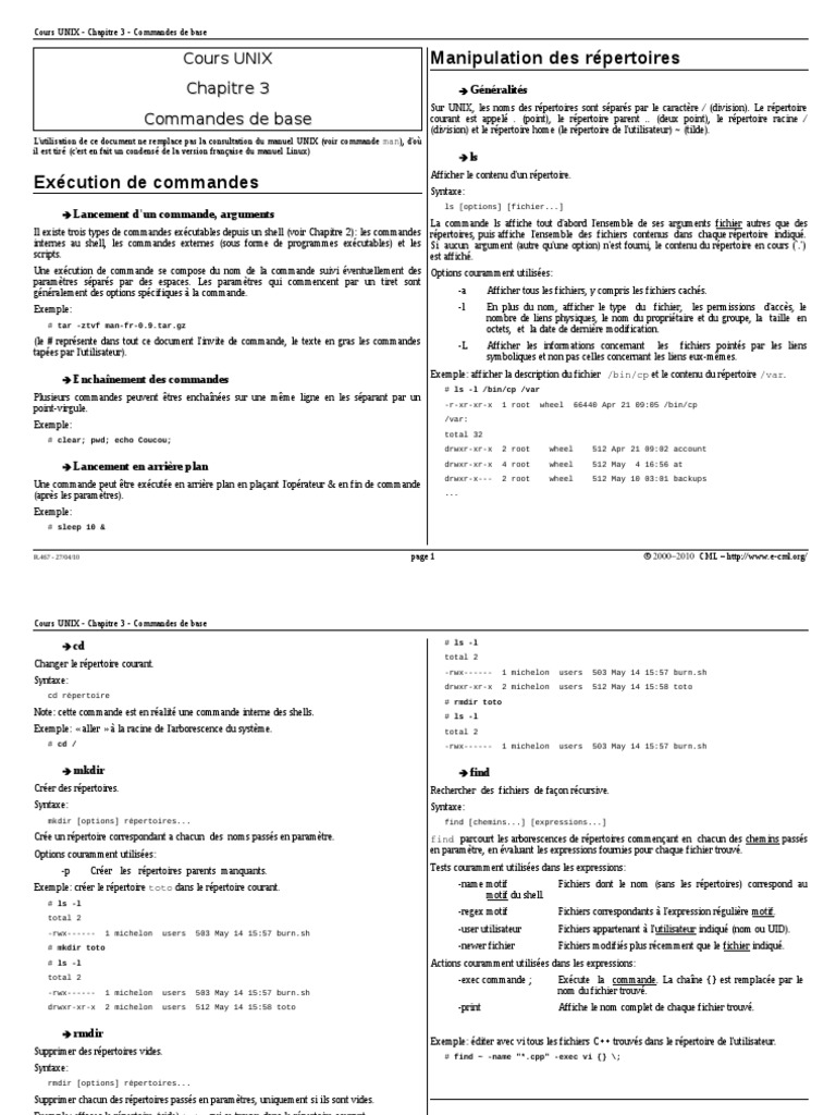 mkdir [options] répertoires... find [chemins...] [expressions...]