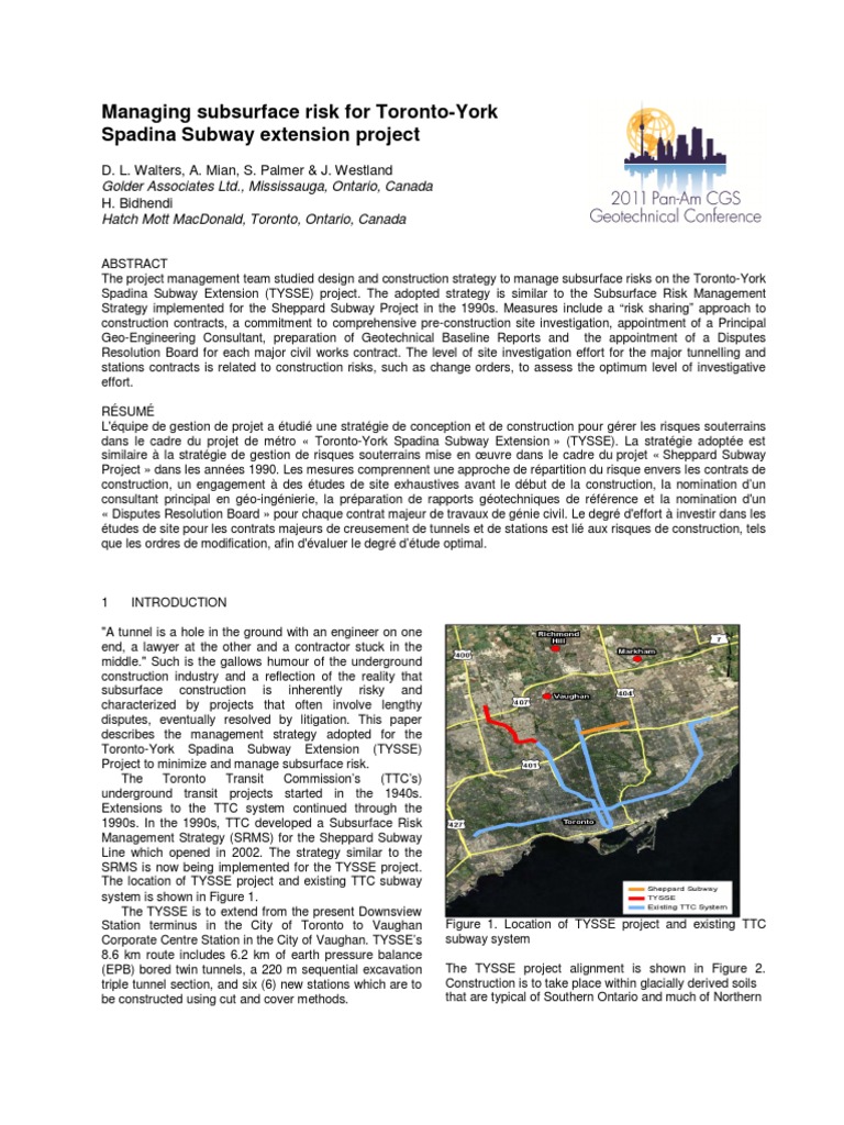 Spadina Subway Extension (TYSSE) project. The adopted strategy is similar to the Subsurface Risk Management