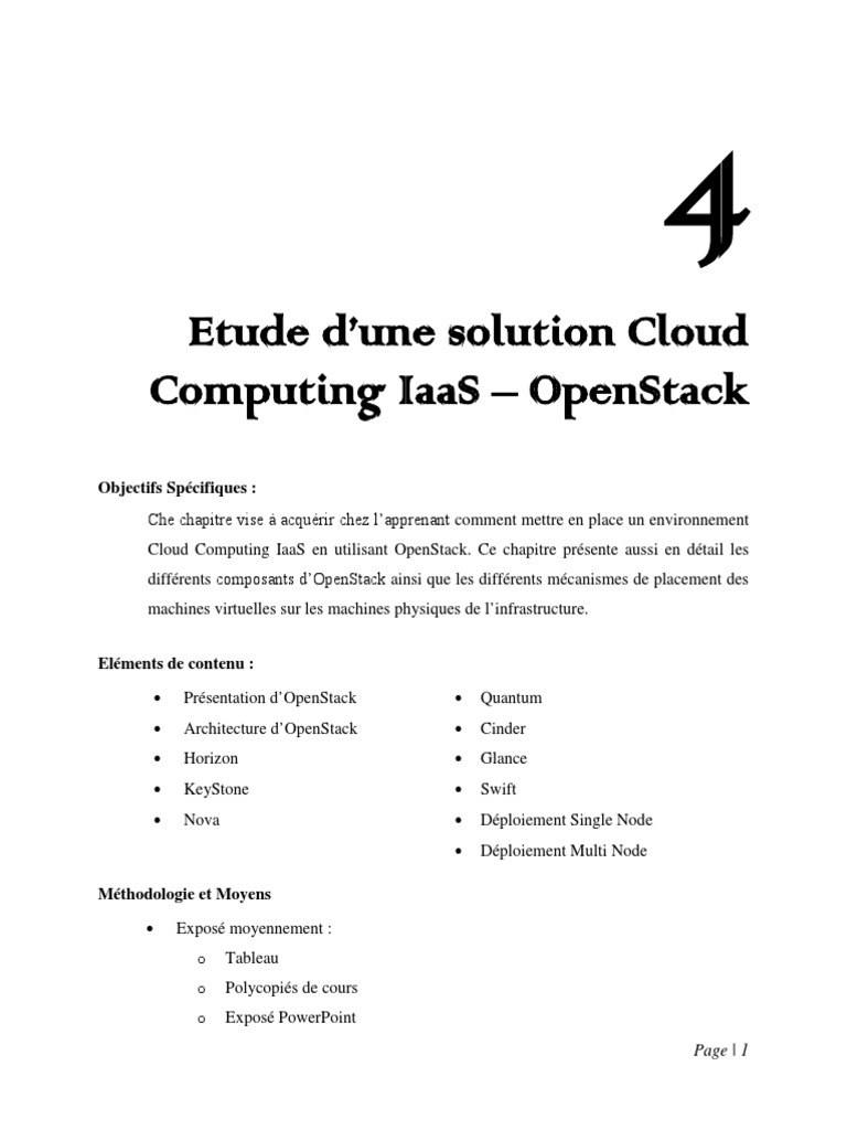 Cloud Computing IaaS en utilisant OpenStack. Ce chapitre présente aussi en détail les