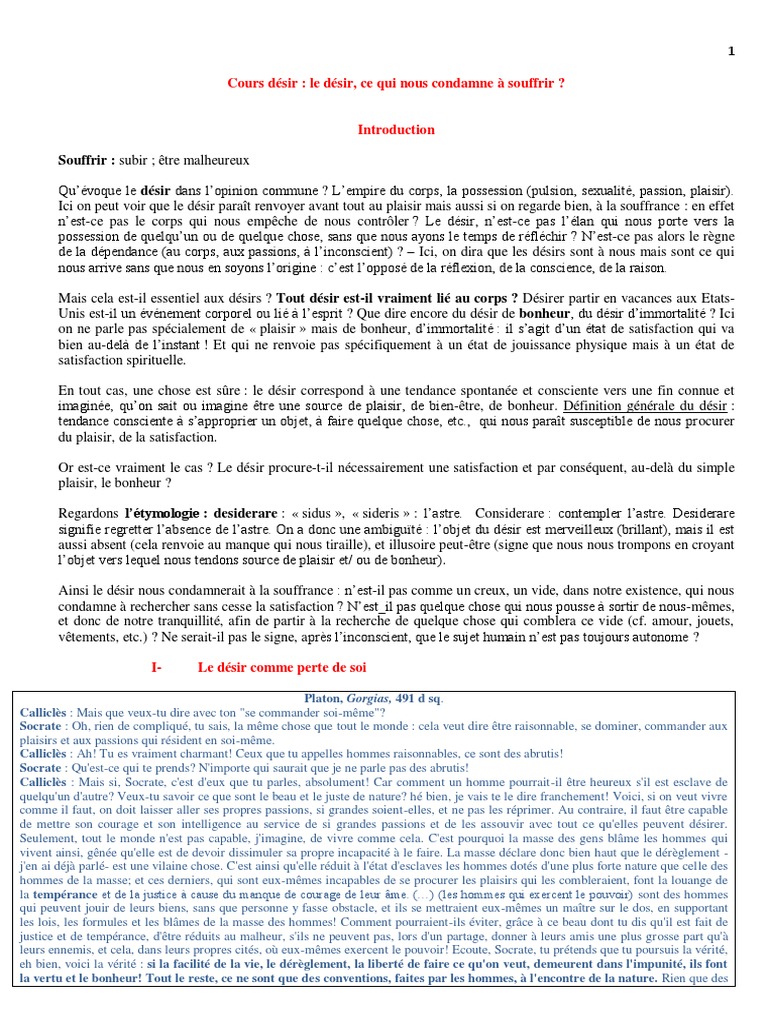 Cours désir : le désir, ce qui nous condamne à souffrir ?