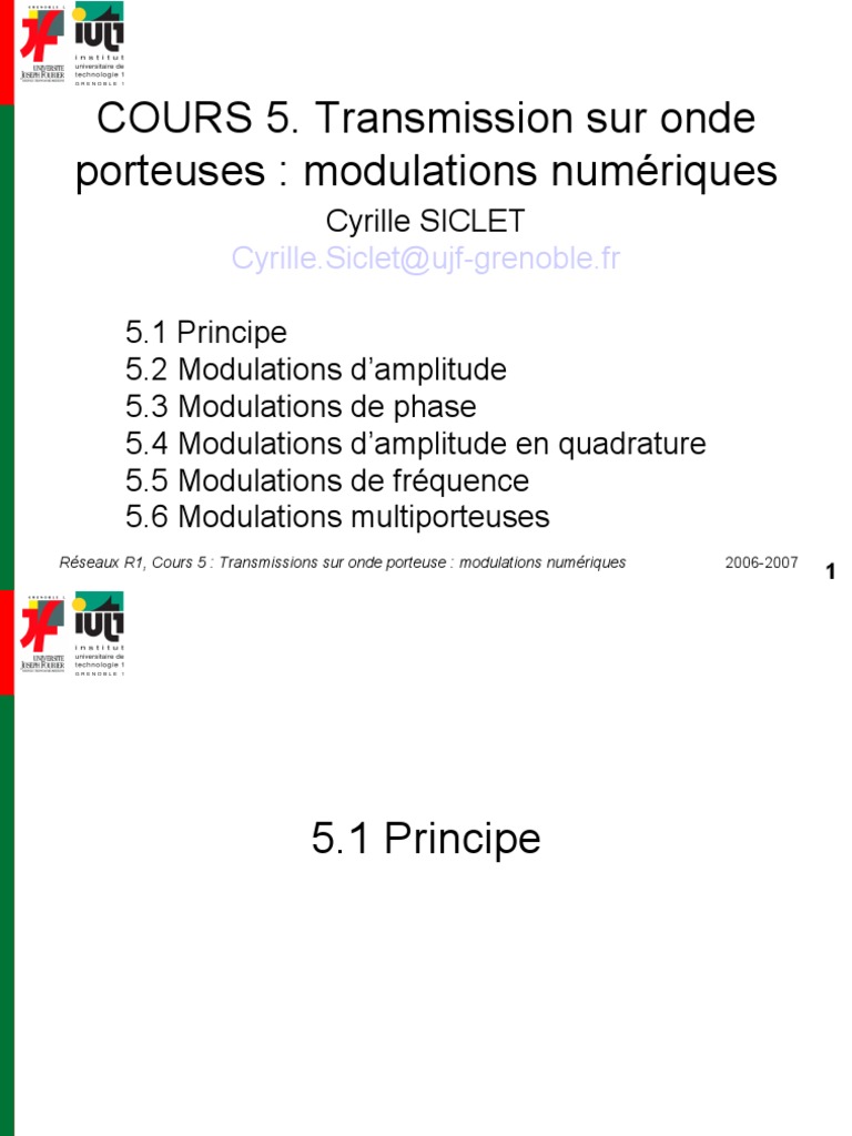 Réseaux R1, Cours 5 : Transmissions sur onde porteuse : modulations numériques 2006-2007