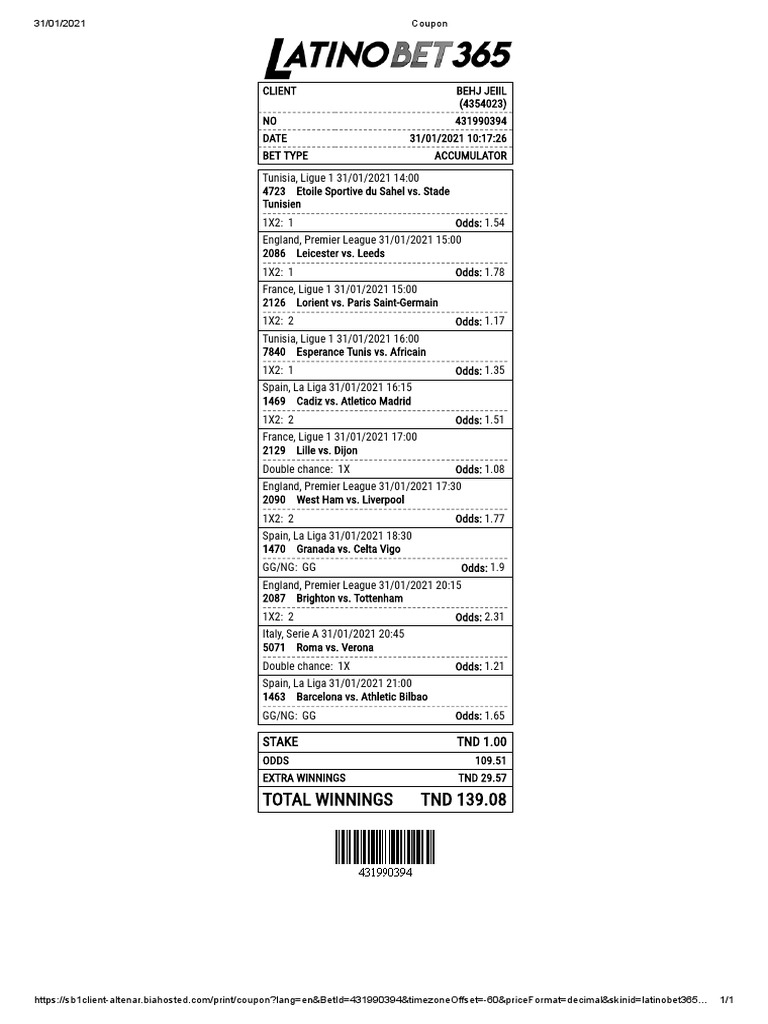 https://sb1client-altenar.biahosted.com/print/coupon?lang=en&BetId=431990394&timezoneOffset=-60&priceFormat=decimal&skinid=latinobet365… 1/1