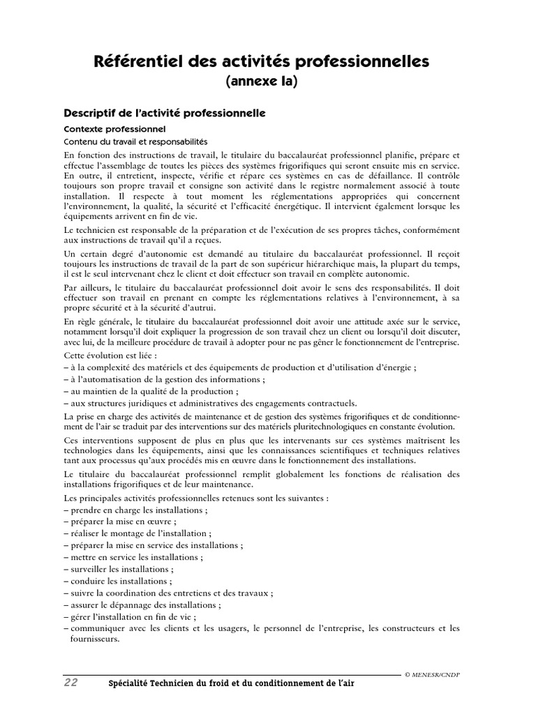 22 Spécialité Technicien du froid et du conditionnement de l’air
