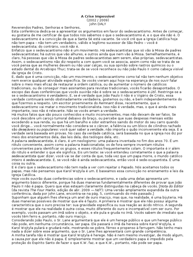 inteiro é sedevacantista. E, se você não é ainda sedevacantista, então você é sede-ocupantista. É uma