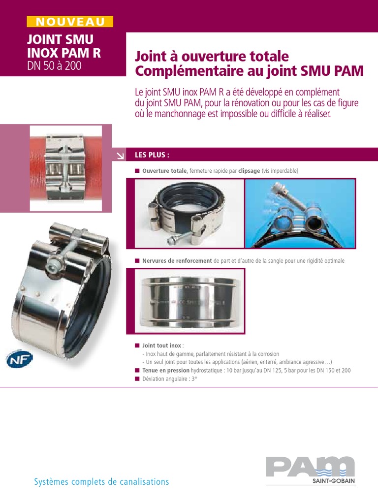- Un seul joint pour toutes les applications (aérien, enterré, ambiance agressive…)