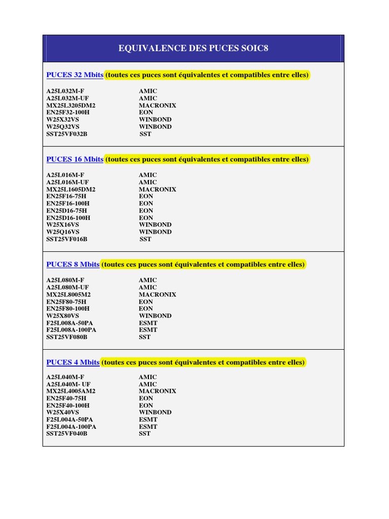 EQUIVALENCE DES PUCES SOIC8