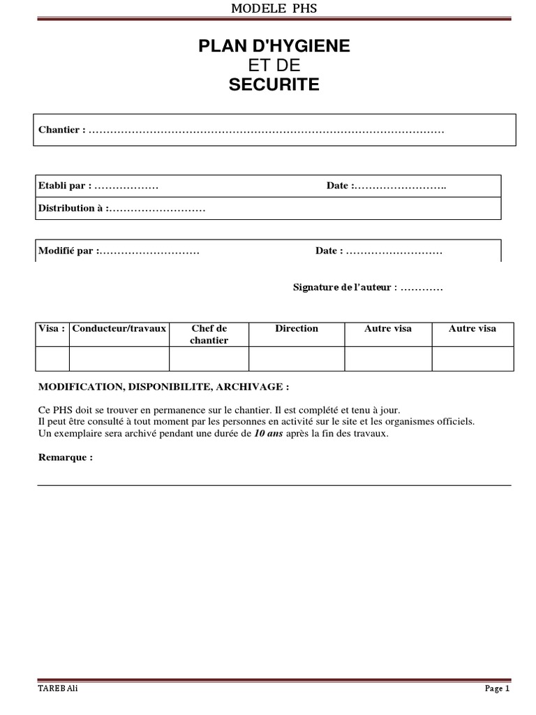 Ce PHS doit se trouver en permanence sur le chantier. Il est complété et tenu à jour.