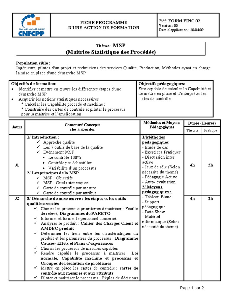 FICHE PROGRAMME Réf: FORM.FINC.02