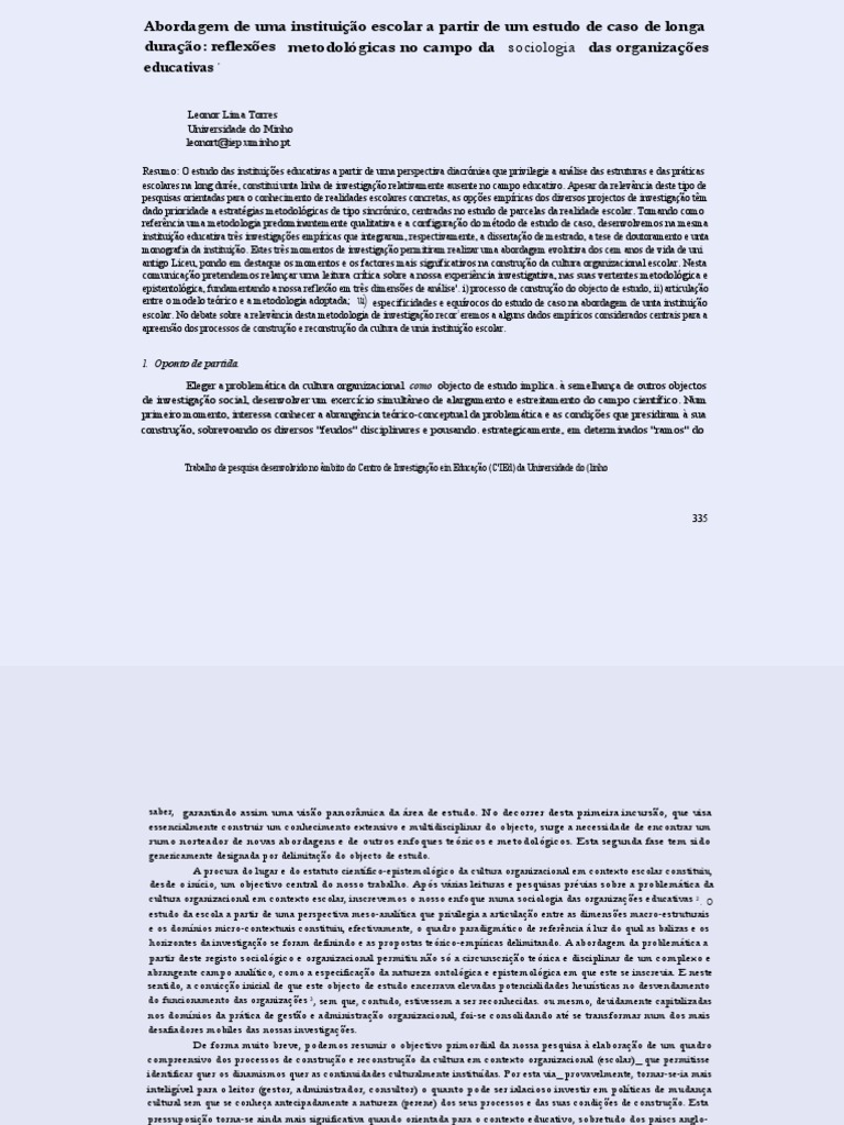cultura organizacional em contexto escolar, inscrevemos o nosso enfoque numa sociologia das organizações educativas 2 . O