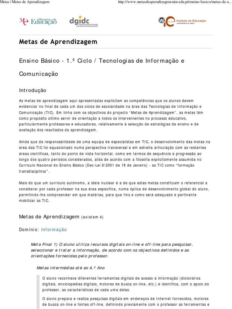 Metas | Metas de Aprendizagem http://www.metasdeaprendizagem.min-edu.pt/ensino-basico/metas-de-a...
