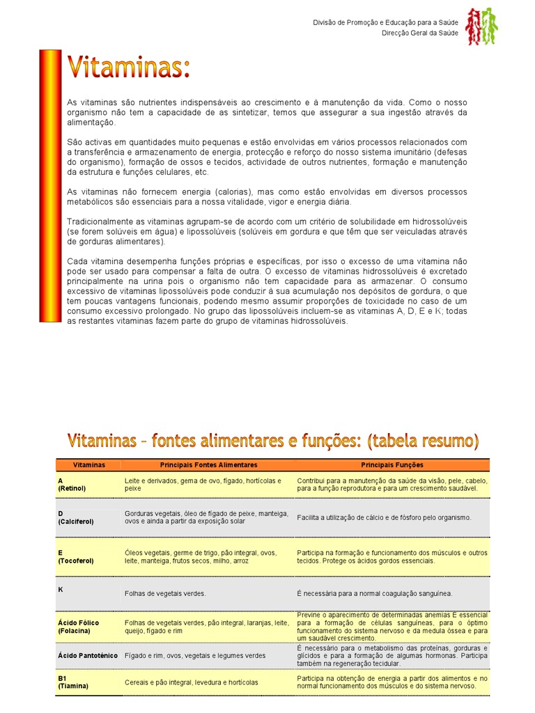 As vitaminas são nutrientes indispensáveis ao crescimento e à manutenção da vida. Como o nosso organismo não tem a capacidade de as sintetizar, temos que assegurar a sua ingestão através da alimentação.