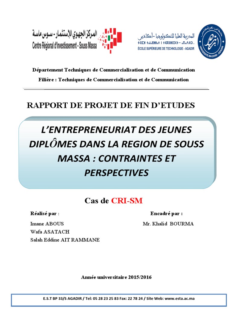 diplômés au sein de la région de Souss Massa ; Contraintes et perspectives », nous vous