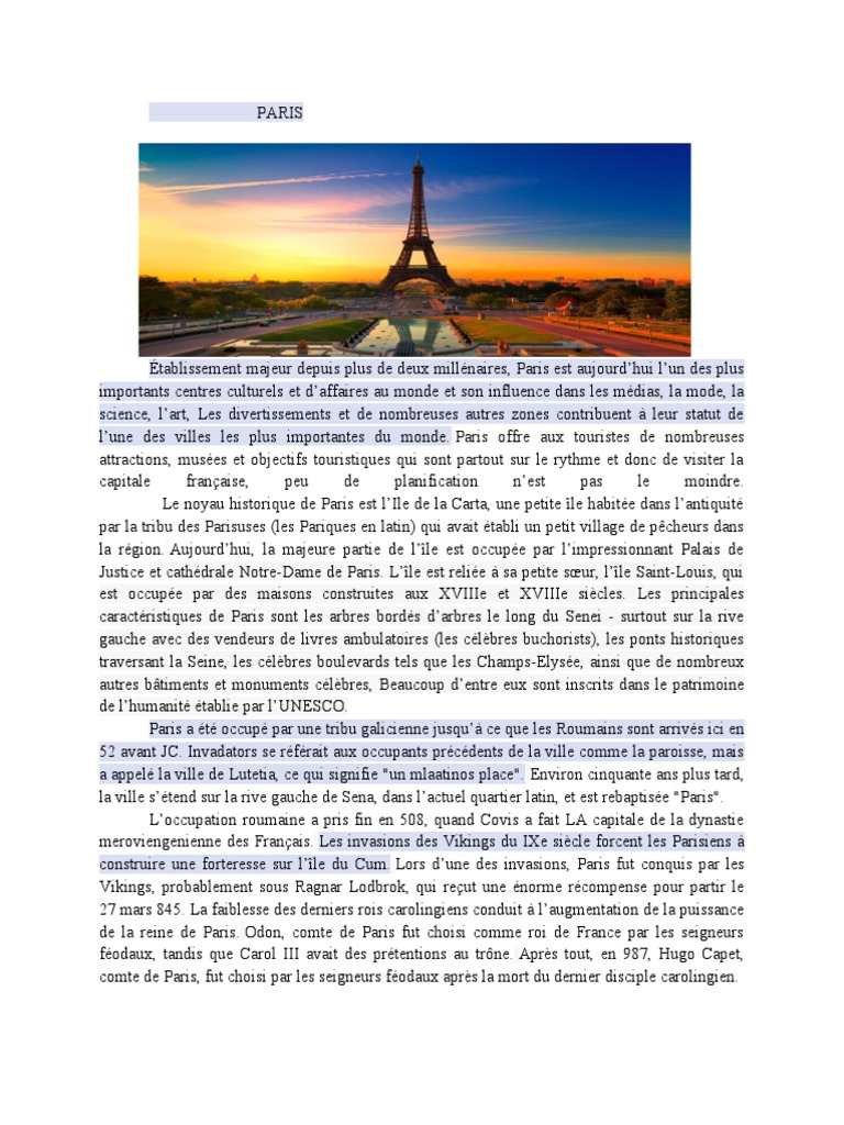 l’une des villes les plus importantes du monde. Paris offre aux touristes de nombreuses