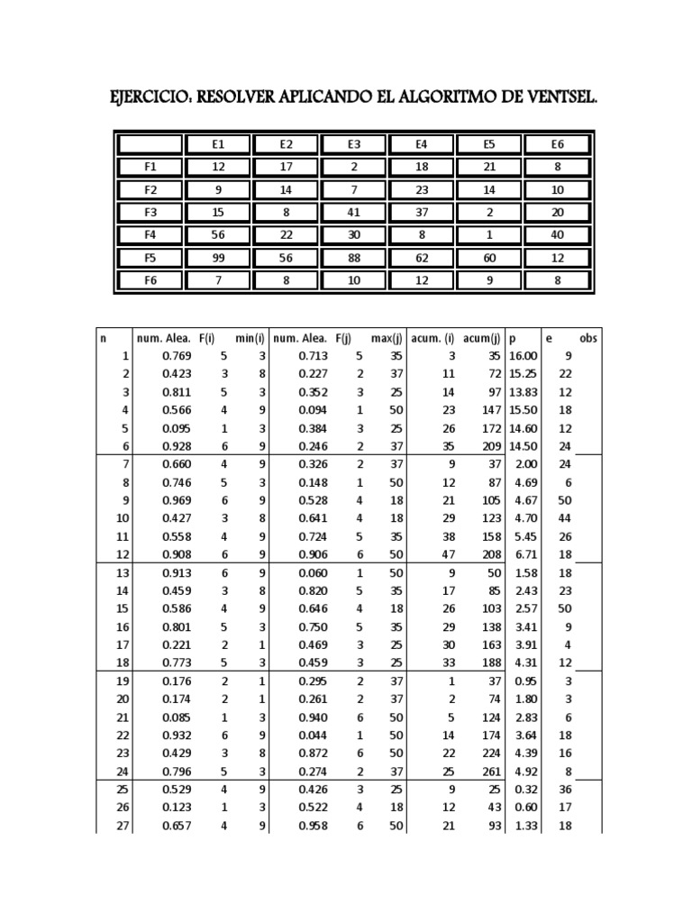 EJERCICIO: RESOLVER APLICANDO EL ALGORITMO DE VENTSEL.
