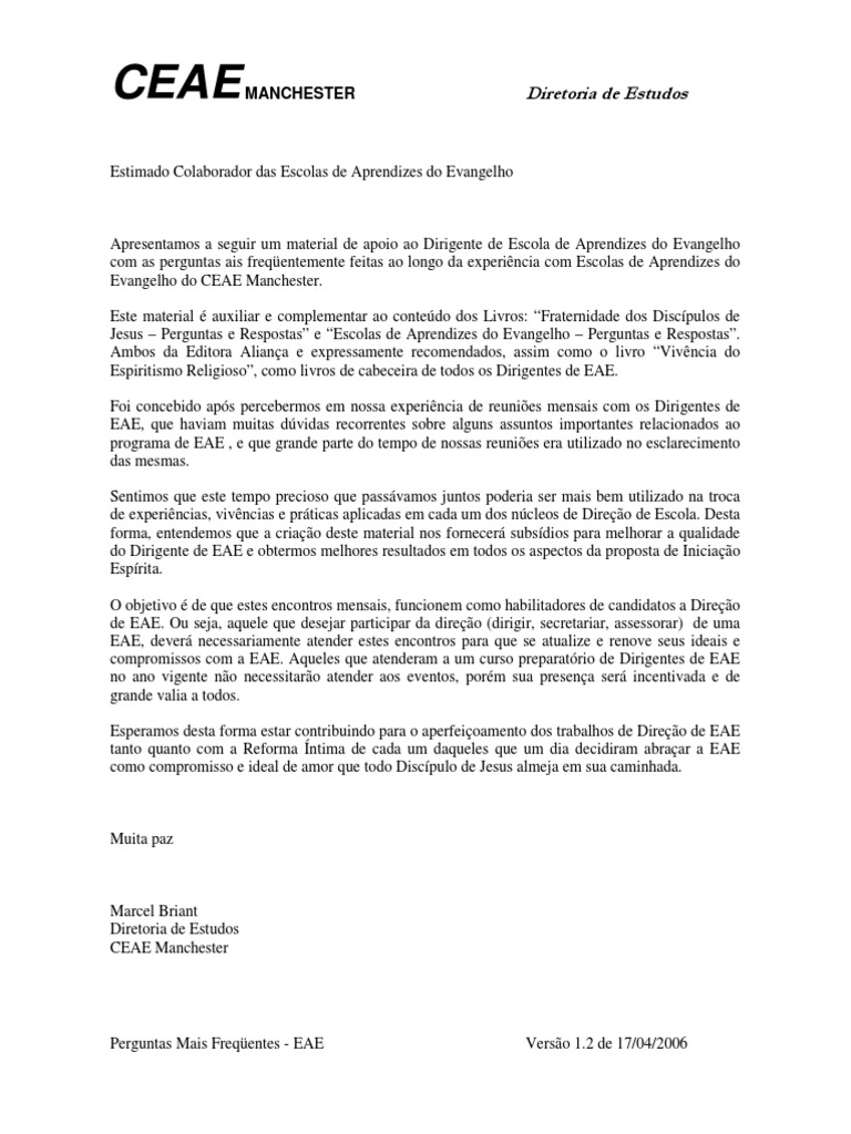 EAE = Escola de Aprendizes do Evangelho