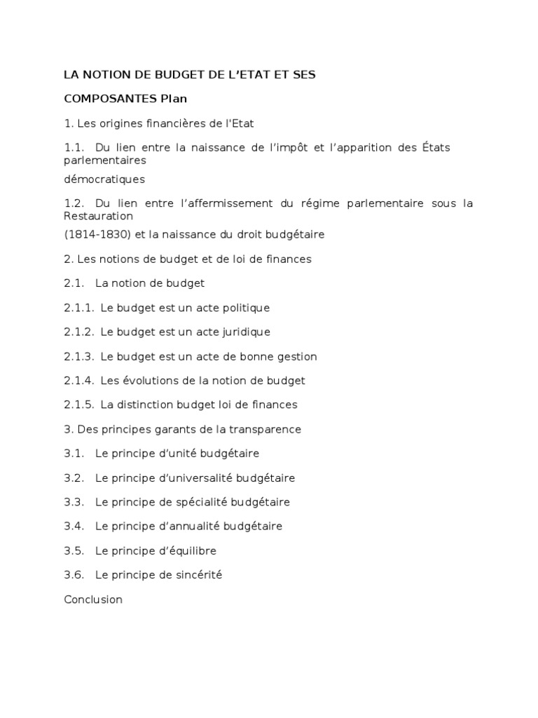 décrire l’évolution de la notion du budget de l’Etat, de faire une