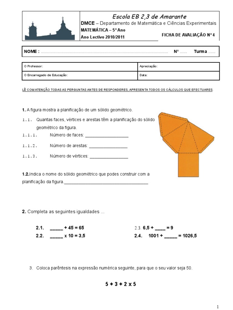 1.1. Quantas faces, vértices e arestas têm a planificação do sólido