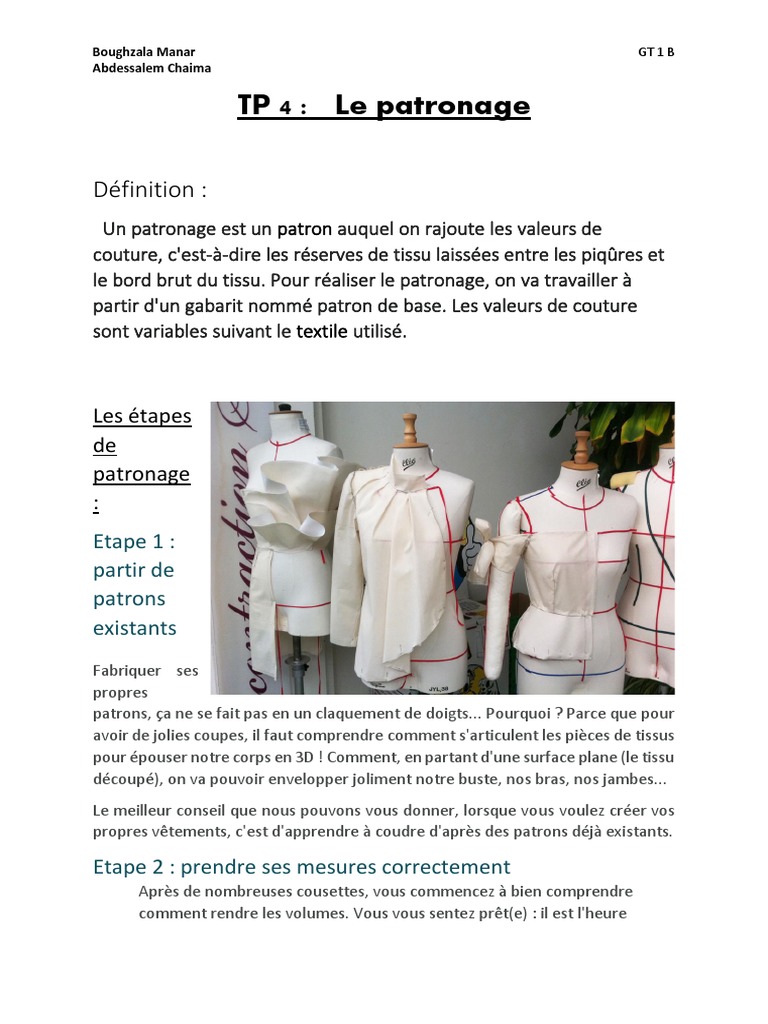 fabrication en couture. Il existe trois types de patron :